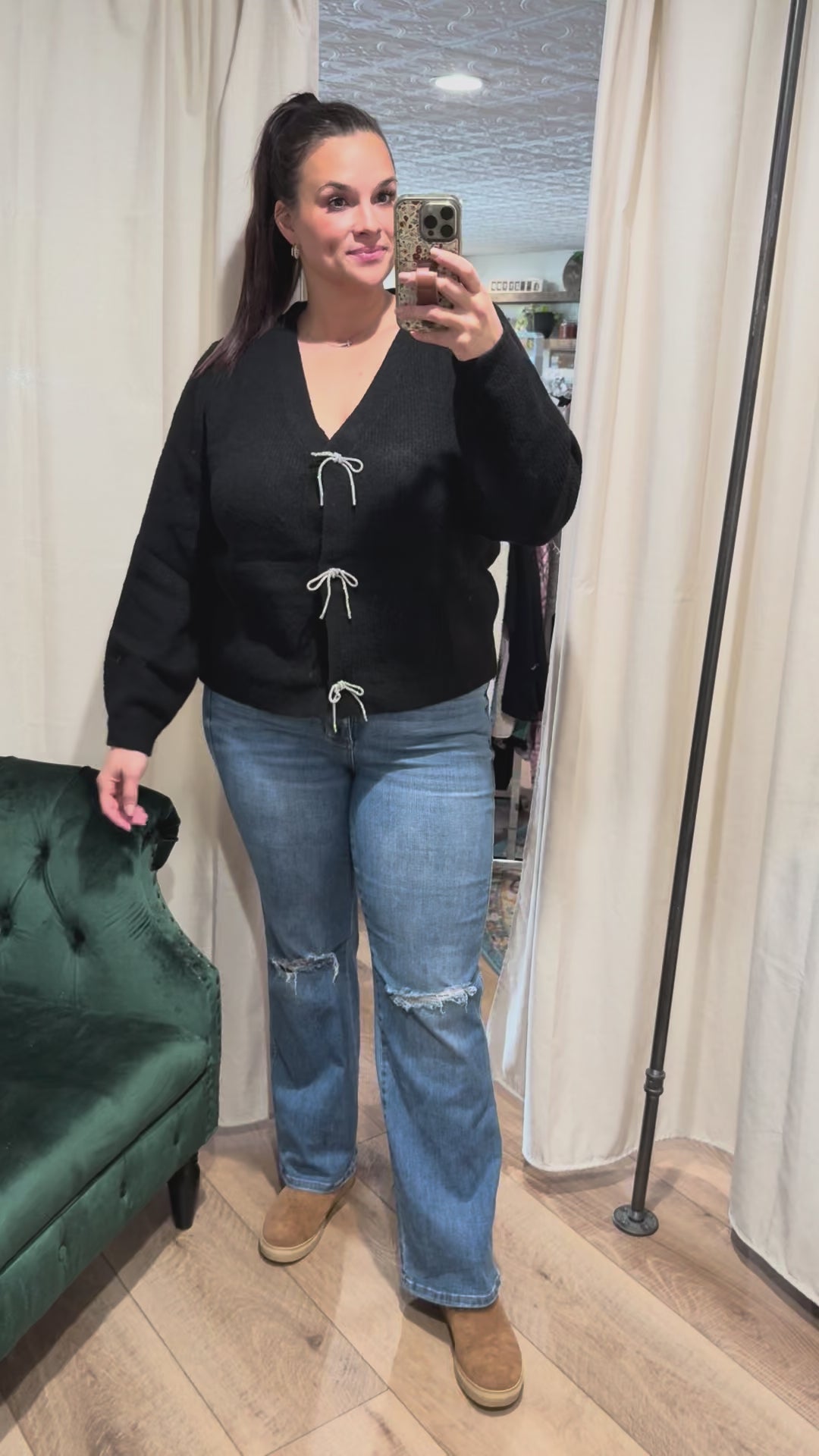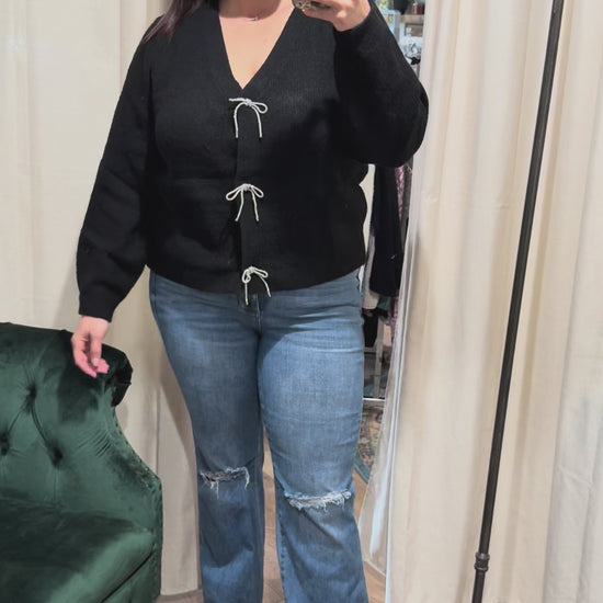 Black Cardigan with Crystal Bows