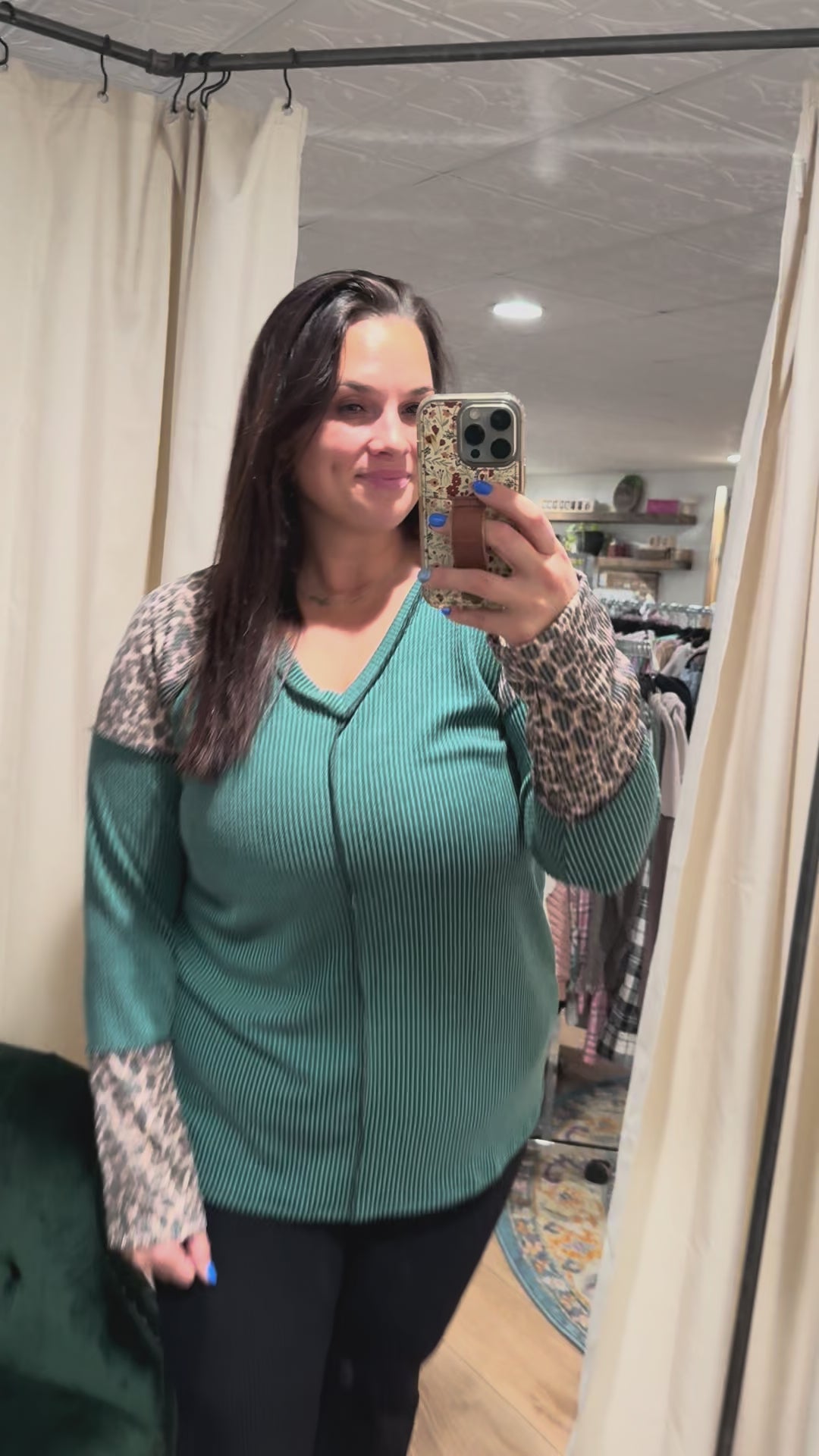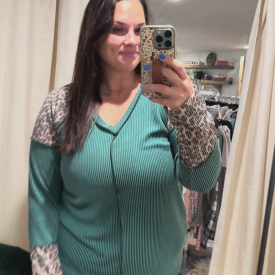Hunter Green / Leopard Ribbed Long Sleeve