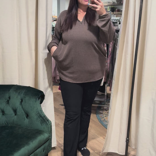 Mocha Ribbed Quarter Zip