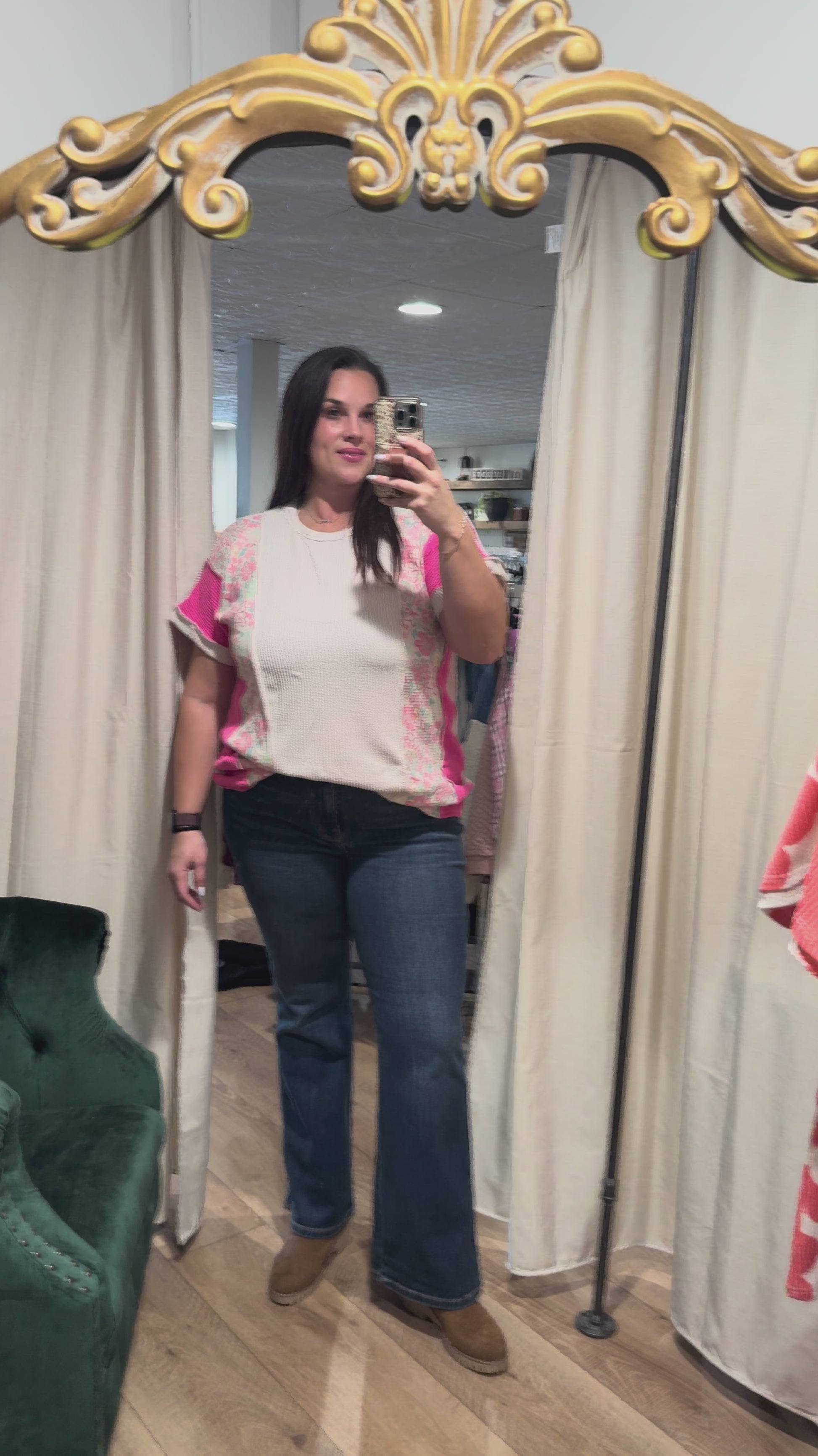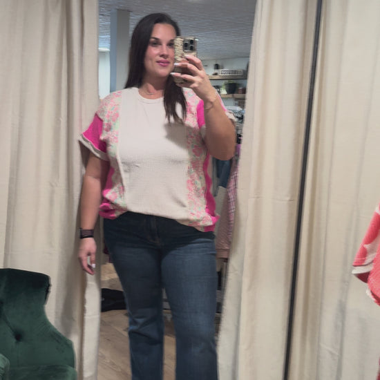 Oatmeal / Fuchsia Floral Short Sleeve