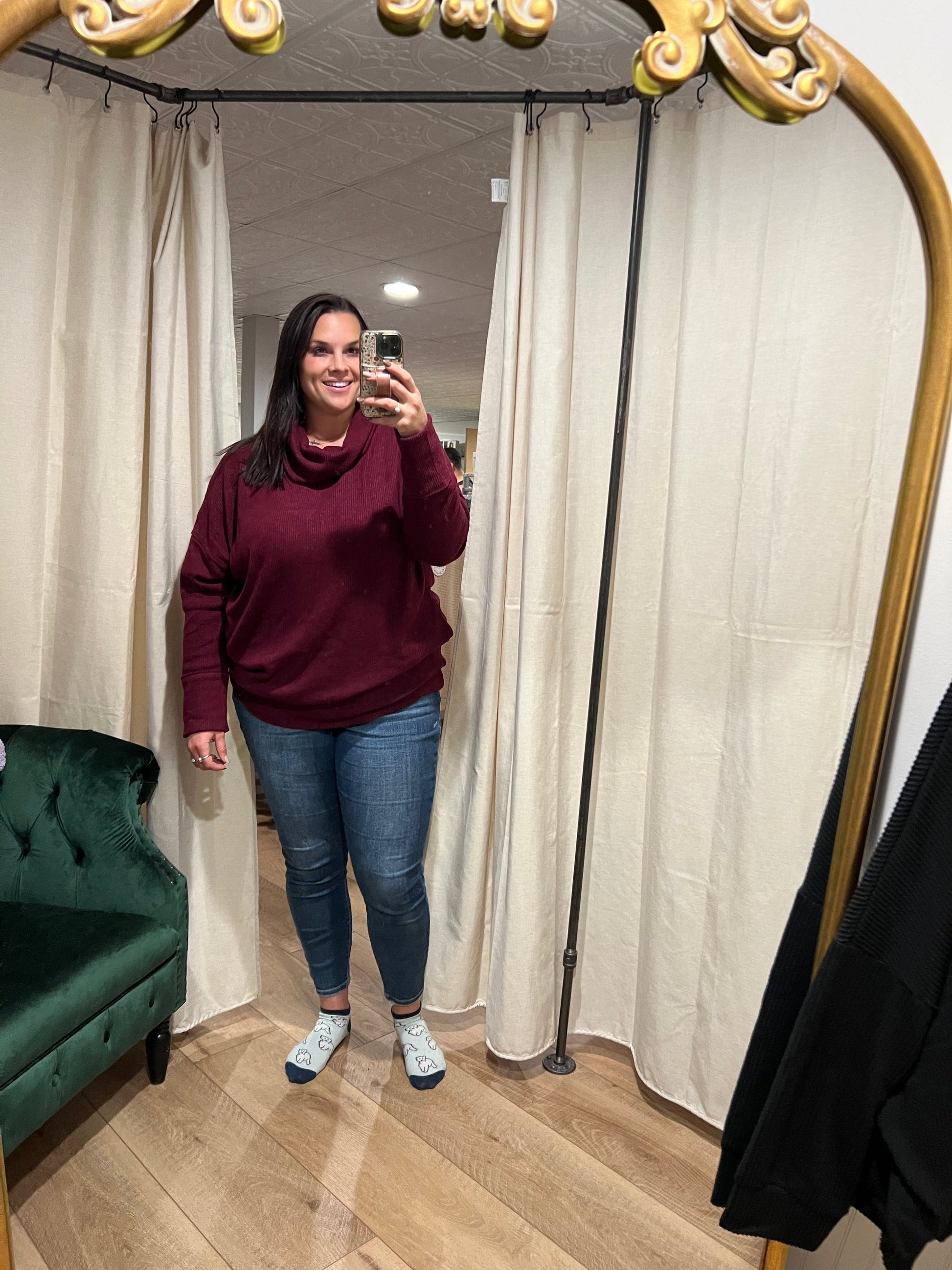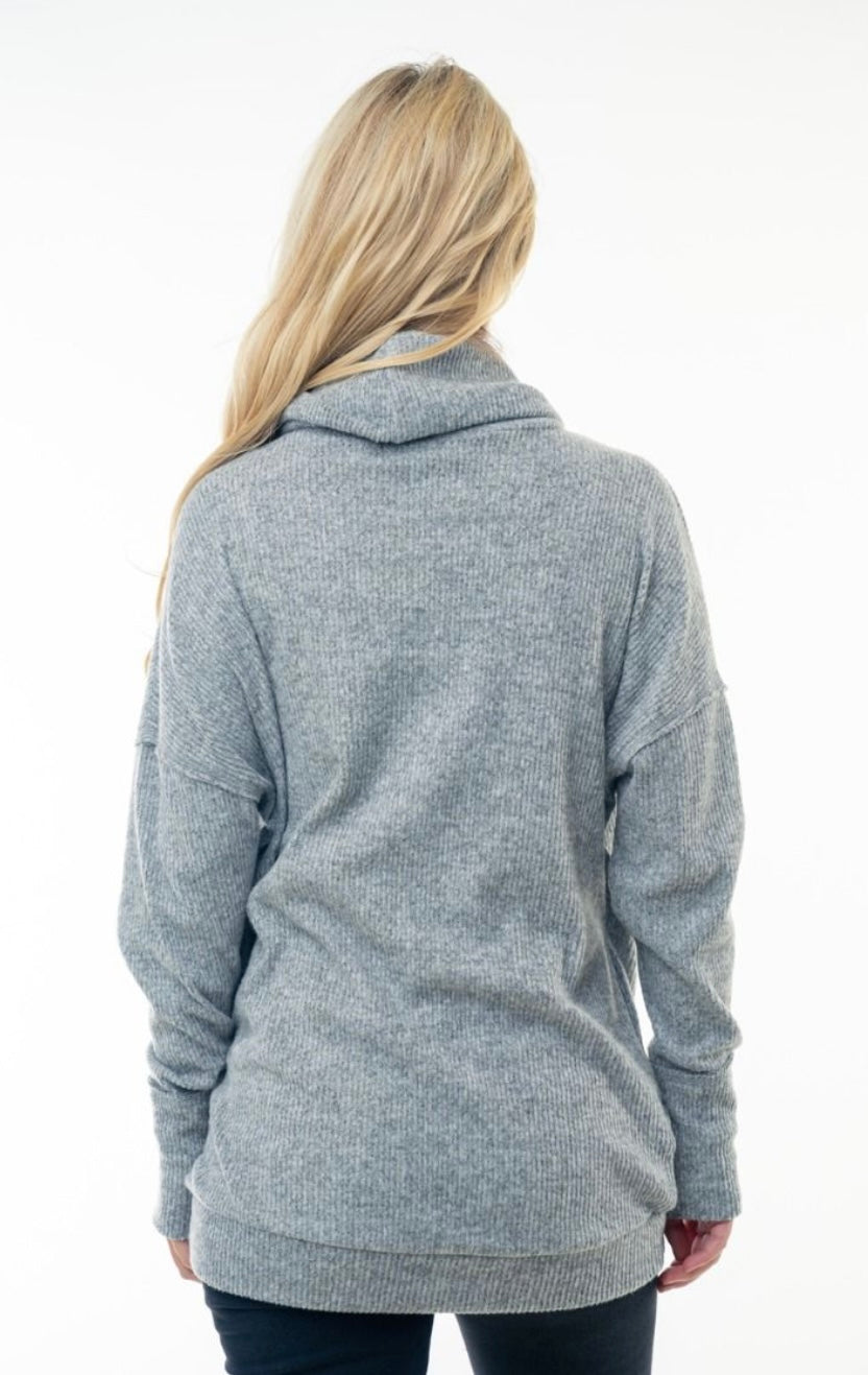 Jersey de cuello alto de canalé con bolsillos (2 colores)