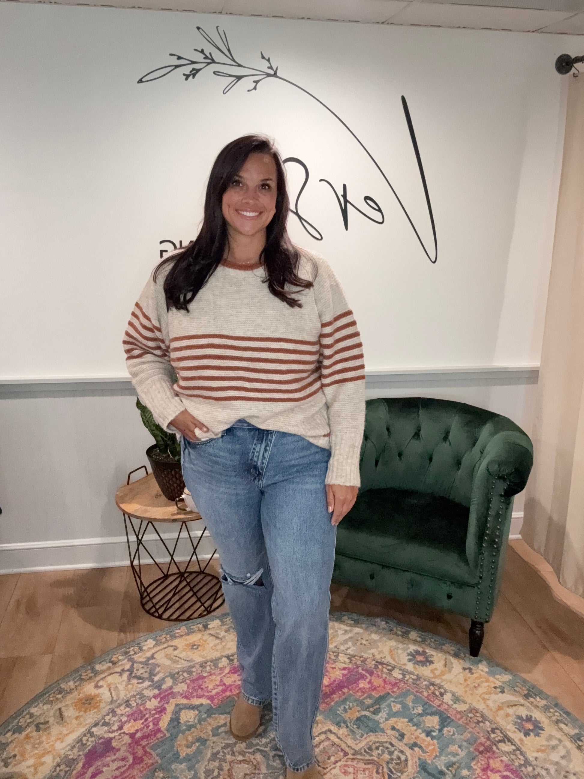 True to size relaxed fit. I’m in a size 1XL and wearing a size 13 in Judy blue jeans.